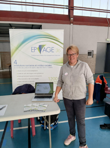 Mercredi 15 octobre, le groupe EP’AGE 36 représenté par Emilie BEAUJEAN-DELAGE, animatrice référente, a eu le plaisir de participer au Forum des Métiers du Sport et de l’Animation organisé au Gymnase Jean Bouin à Châteauroux, un événement dédié à la découverte des métiers liés à l’animation et au sport.