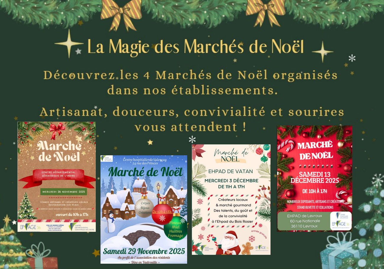 Venez découvrir les 4 Marchés de Noël organisés dans nos établissements : une belle occasion de rencontrer les artisans locaux, de déguster des douceurs et de faire le plein d’idées cadeaux !