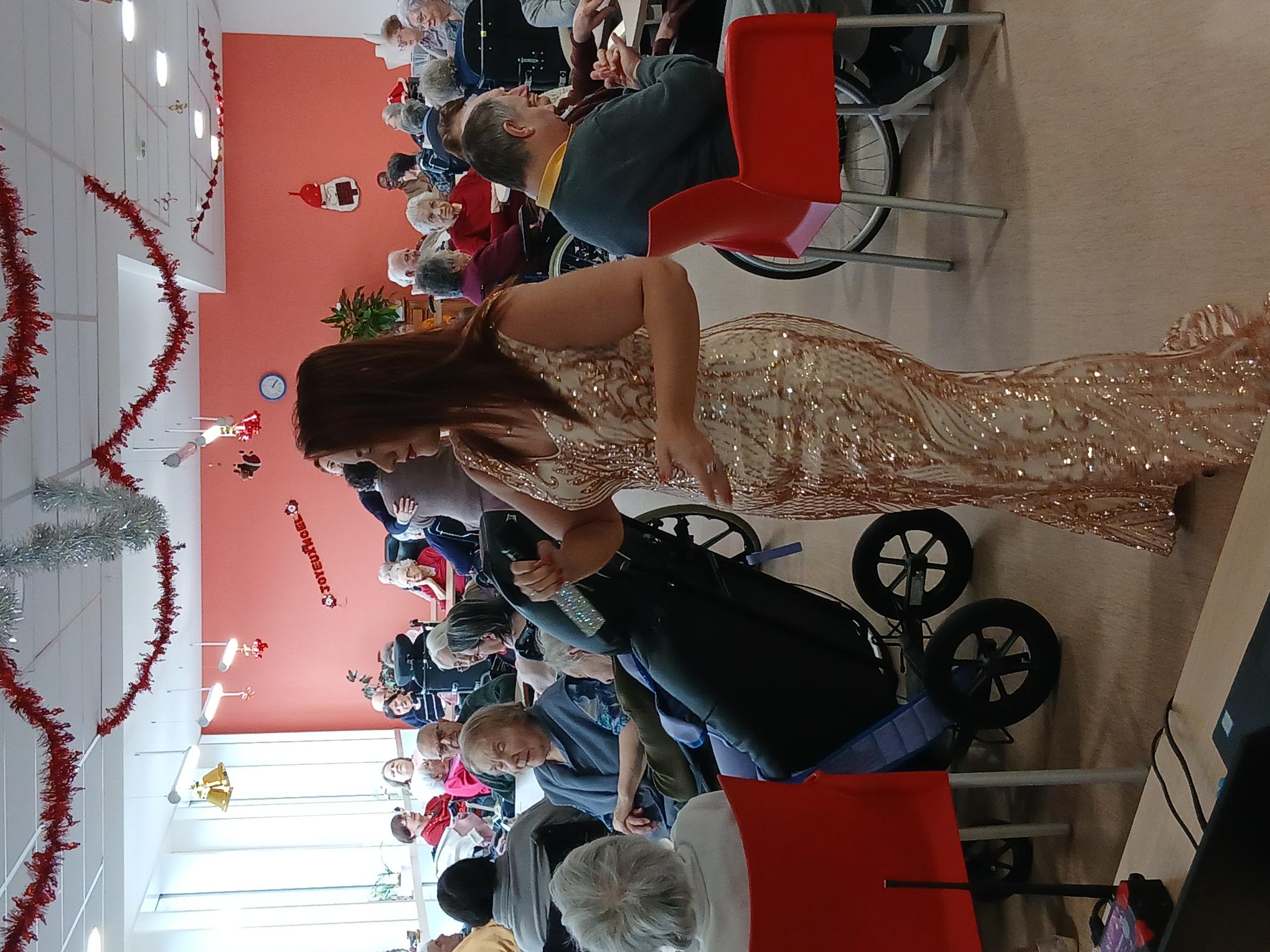 Élodie DIAMANT, artiste très connue sur notre territoire, a illuminé la salle à manger de la résidence Bellevue de ses paillettes et de son talent. Sa voix puissante et chaleureuse a transporté chacun dans un voyage musical rempli d’émotions. |
